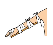 ギプスを縦半分に切り、網包帯でカバーするもの - 副木(そえ木)固定